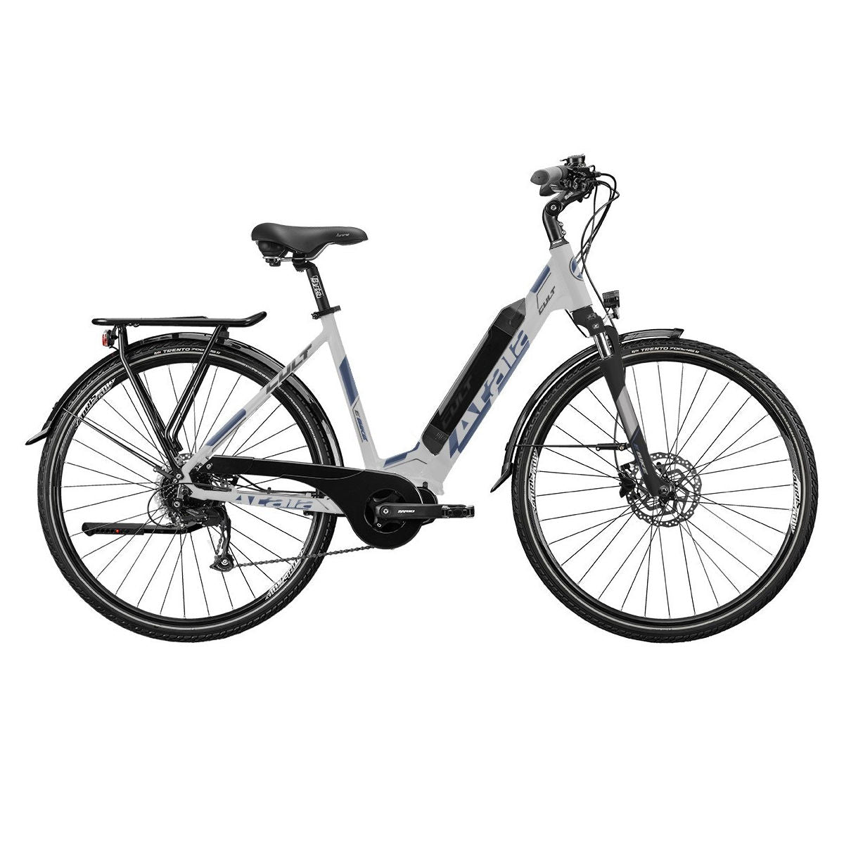 Il telaio in alluminio hydro‑formed da 28″, con integrazione totale della batteria e cablaggio interno, conferisce un look pulito e moderno. Il sistema di cambio Shimano 9 v e la forcella ammortizzata (circa 50–60 mm) garantiscono comfort e scorrevolezza su ogni tipo di fondo. I freni idraulici Shimano MT200 con dischi da 160 mm assicurano una frenata potente e modulata in ogni condizione. La batteria da 418 Wh supporta fino a 90 km di autonomia, con ricarica all’80% in circa 4 h 40 min (tempo 100% 6 h 30 min). L’elegante finitura grigio/blu opaco aggiunge un tocco di personalità femminile e urbana.