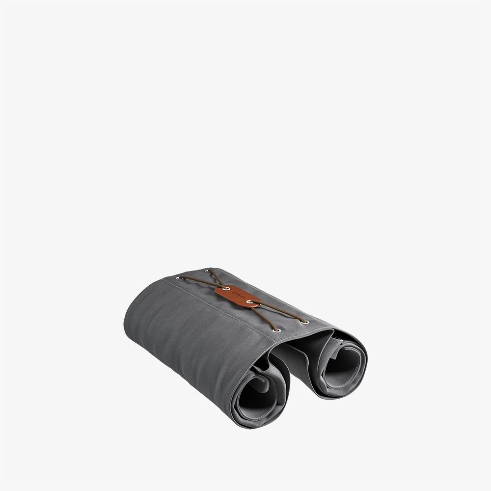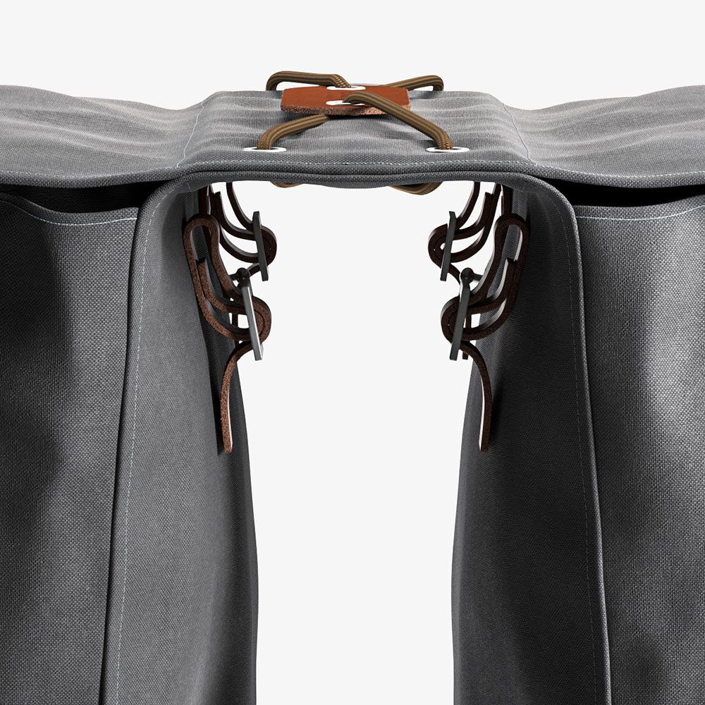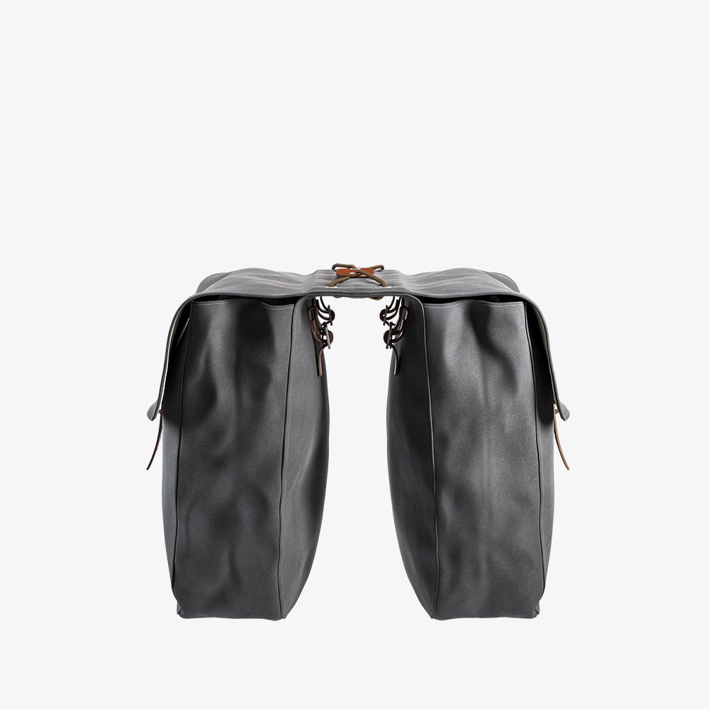 Realizzata in cotone canvas idrorepellente con finiture in pelle conciata al vegetale, questa borsa è pensata per essere drappeggiata sul portapacchi posteriore e fissata con robuste cinghie in pelle. Quando non serve, si arrotola con facilità, occupando pochissimo spazio.