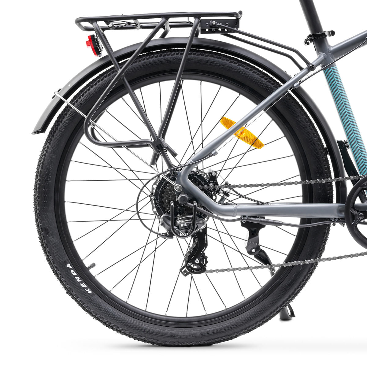 Con il motore posteriore Bafang 250 W – 45 Nm, il cambio Shimano a 7 velocità e la batteria integrata da 374 Wh, questa trekking e-bike ti permette di affrontare ogni salita con naturalezza e fluidità.
