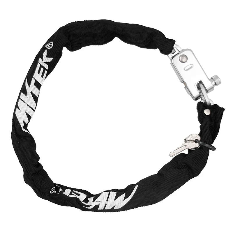 La catena è rivestita da una guaina in tessuto resistente, pensata per evitare graffi o danni al telaio della bicicletta. Il sistema di chiusura a chiave è preciso e affidabile, e la confezione include una chiave di scorta, utile in caso di smarrimento.